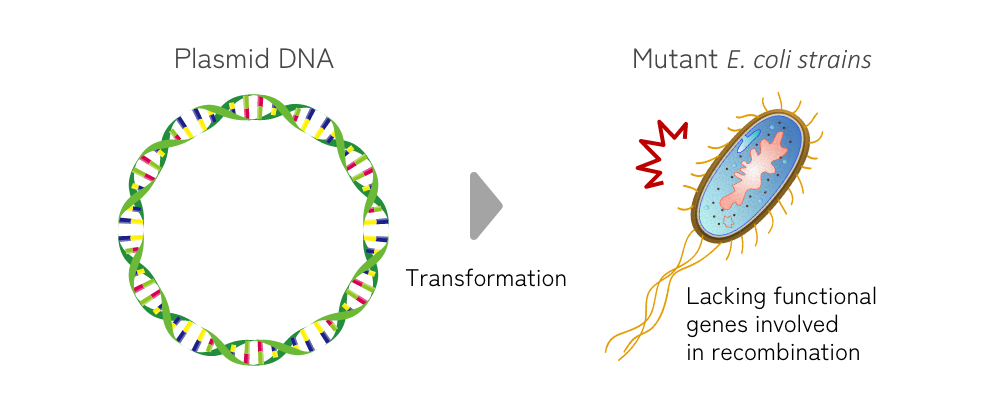 E. coli strains lacking genes involved in genetic recombination are widely used to avoid recombination of plasmids. However, it is often difficult to completely avoid generation of recombinants.