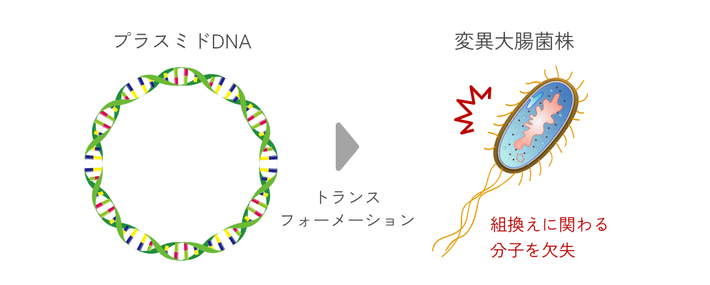 組換えに関わるRecA遺伝子等を欠失させた変異大腸菌株は、組換え体ができるのを防ぐために広く使われている。しかし、このような大腸菌株を使っても、組換え体等ができることを完全に防ぐことはできず、増幅がかけられないプラスミドは非常に多い。